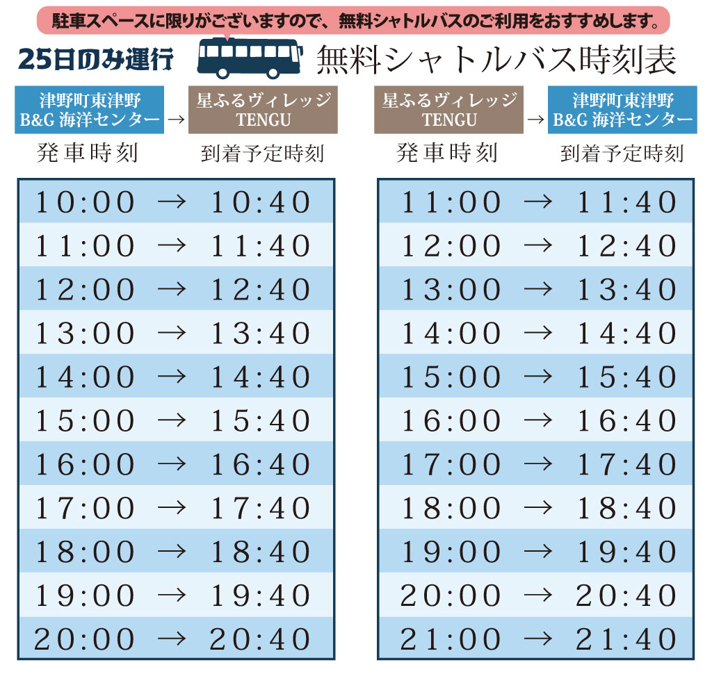無料シャトルバス時刻表